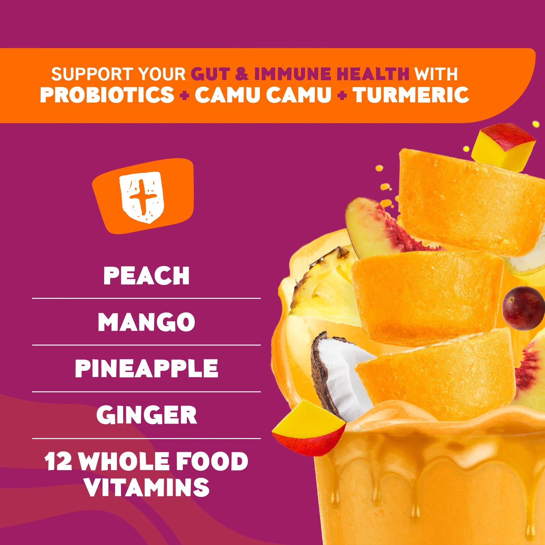 - Immune-supporting ginger, turmeric & camu camu