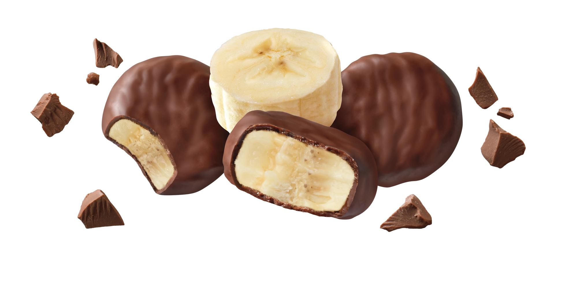 Bananas, Dark Chocolate (Sugar, Chocolate Liquor, Cocoa Butter, Soy Lecithin [Emulsifier]), Peanut Oil.