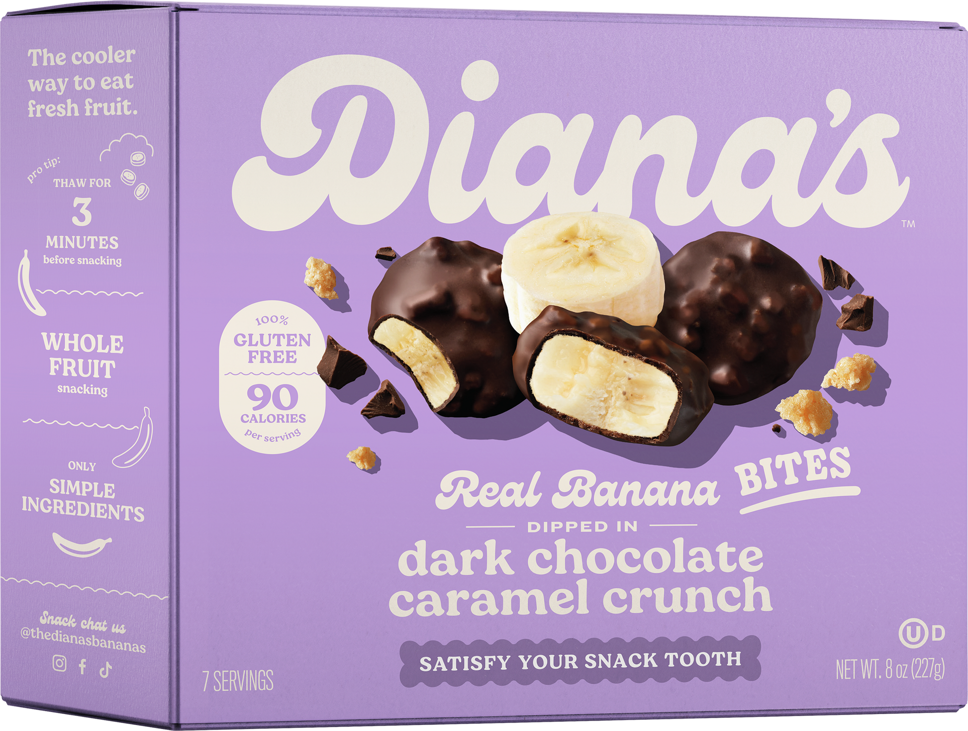 The result is Diana's Bananas, a naturally sweet and indulgent frozen fruit snack that won't ruin your diet, appetite, or bank account. Diana's Bananas is a timeless alternative to ice cream cones, ice cream bars, dessert bars, and popsicles.